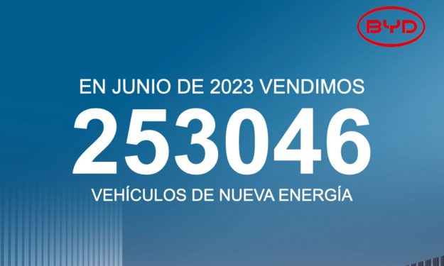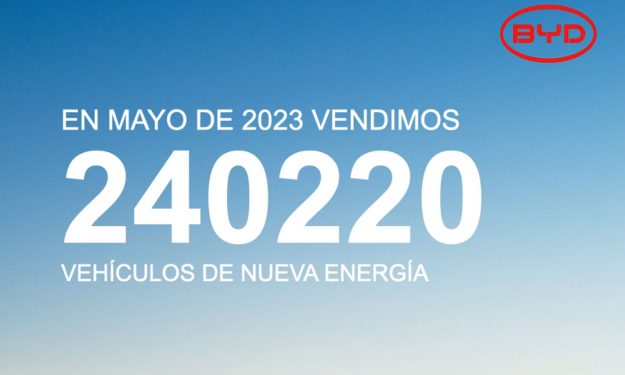 En mayo de 2023, BYD alcanzó un total de ventas mensuales de 240,220 Vehículos Eléctricos (NEV) 3 de junio de 2023