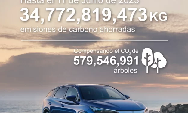 A partir del 11 de junio de 2023, BYD ha ahorrado un total de 34,772,819,473 kg de emisiones 12 de junio de 2023